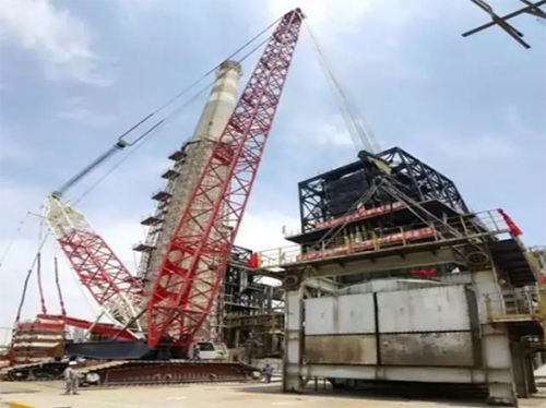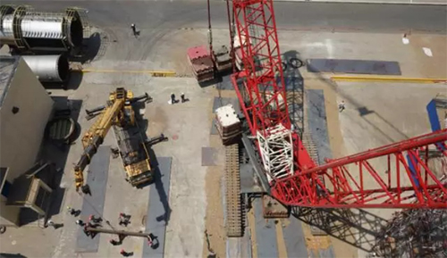 空氣預(yù)熱器逐步分離,舉高、旋轉(zhuǎn)、落地,在650噸履帶式吊車站位地面完成了585立方米的“換填”工作,施工人員克服天氣炎熱等諸多困難完美收官!