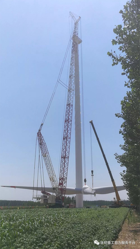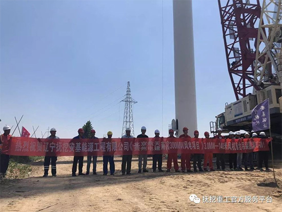 遼寧撫挖安基能源工程有限公司在北京航天·貴州電建 南宮300MW風電場項目施工中,于2019年7月3日在河北省邢臺市南宮市完成首臺單機容量3.0MW、輪轂中心高度104米的風機安裝,這既是我公司首臺高度更高 、重量更大 的3.0MW-140米風機安裝,也是目前為止風機廠家-金風科技的 3.0MW-140米柔塔風機批量吊裝施工的開始,為遼寧撫挖安基能源工程有限公司在風電施工領(lǐng)域填寫輝煌的一筆。